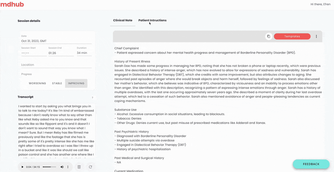 You are now able to generate highly detailed sections, for example for HPI, MSE or Assessment & Plan sections. Simply, go into the Template section, create a template with only 1 section (e.g. HPI) and re-generate the note. See the magic happen.